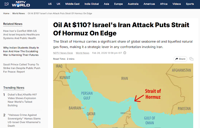 ඉරානයට එල්ල වූ ප්‍රහාරයත් සමඟ ලොව තීරණාත්මකම බලශක්ති මංසන්ධියක් වන හෝමුස් සමුද්‍ර සන්ධිය හරහා සිදුවන තෙල් සැපයුමට බාධා එල්ල වීමේ දැඩි අවදානමක් මතුව ඇති බව වාර්තා වේ. මෙම භූ-දේශපාලනික නොසන්සුන්තාව හමුවේ බොරතෙල් බැරලයක මිල ඇමරිකානු ඩොලර් 95 සිට 110 දක්වා ඉහළ යා හැකි බවට ආර්ථික විශේෂඥයෝ අනතුරු අඟවති. දැනට ඩොලර් 70ක පදනම් මිලක පවතින බැරලයක මිල, සැපයුම් අඩාල වීම සහ පවතින අවදානම හේතුවෙන් මෙලෙස ශීඝ්‍රයෙන් ඉහළ යාමට ඉඩ ඇති බව එම වාර්තා පෙන්වා දෙයි.